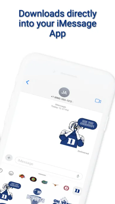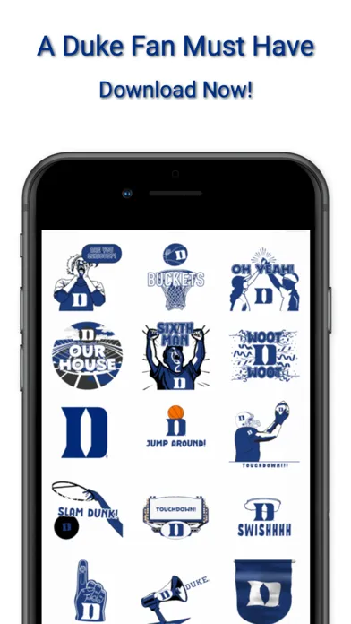 Cheer on Duke University this year with this new collection of static and animated stickers you can send to your friends via text messaging. Stickers include Jump Around, animated Slam Dunks, Animated Touchdown Spikes, Sixth Man, Animated Swish, and over 15 additional stickers that will send the message that Duke University is #1 and home of champions….Go Devils!