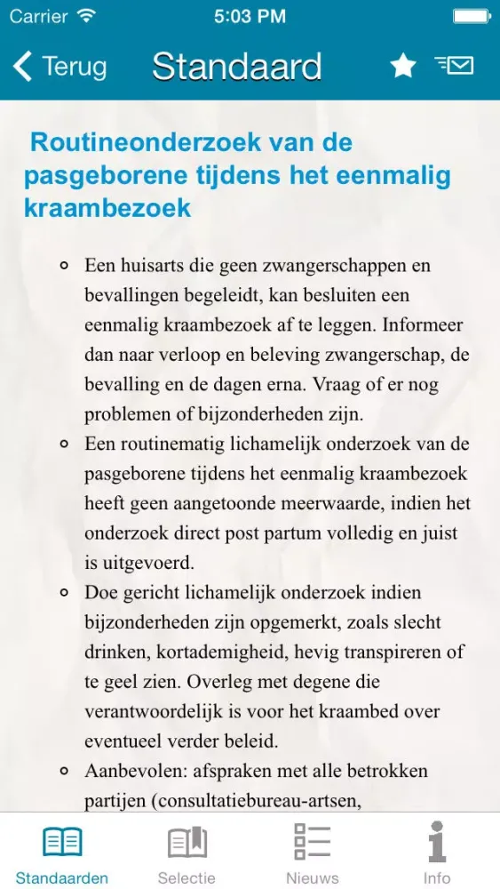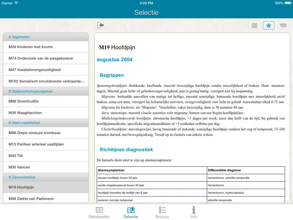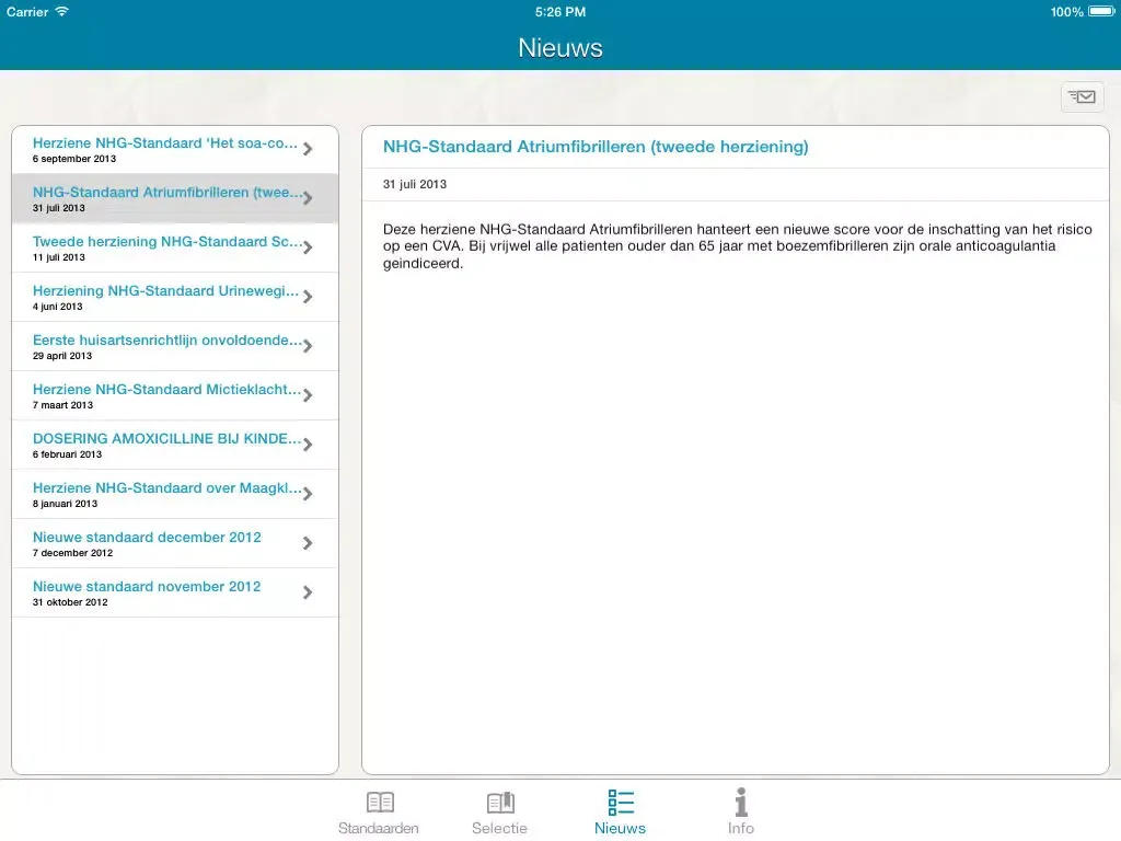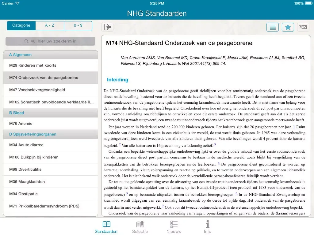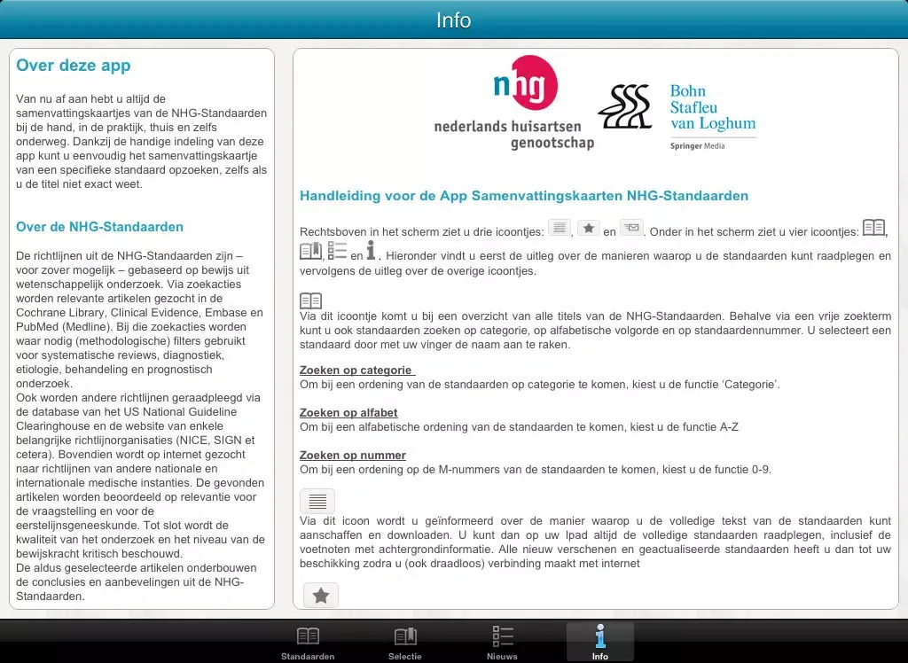Vanaf nu heeft u op uw iPhone altijd de samenvattingskaartjes bij de hand, in de praktijk, thuis en onderweg. In de app zijn alle NHG Standaarden samenvattingskaartjes overzichtelijk samengevoegd. Is er nieuwe samenvattingskaart beschikbaar dan ontvangt u hierover een melding in de app. Download u de App op uw iPad dan heeft u niet alleen toegang tot de samenvattingskaartjes, maar tot de complete versie van de NHG Standaarden. Zo bent u altijd up to date.