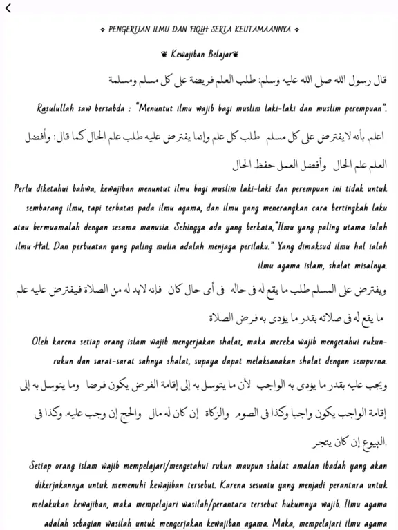 - pertama, menerangkan hakekat ilmu, hukum mencari ilmu, dan keutamaannya.