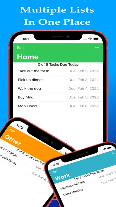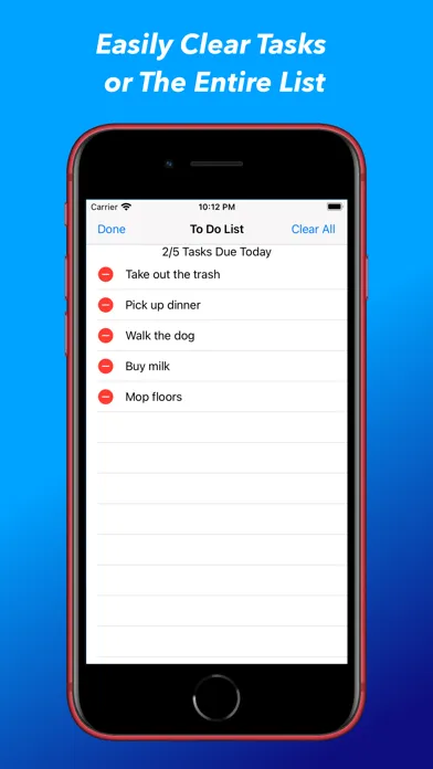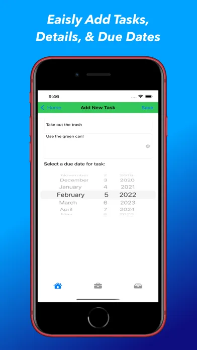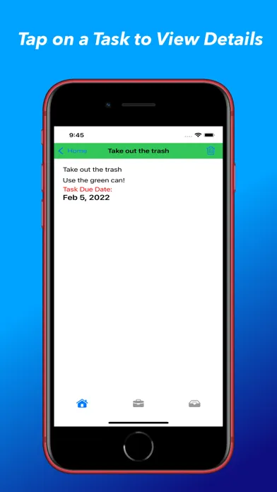 We all have a million things we need to do. Keep track of your to do lists for home, to do list for work, and task lists for anything else. Easily manage your daily to do list tasks with confidence! Keep track of what tasks need done today, and easily add new tasks to your to do list. Need a little more space to addd some details to your task? No problem! Simply add the details when you create the task. You can view the details by tapping on the to do list task. Once you complete a task simply delete it from you list with ease.