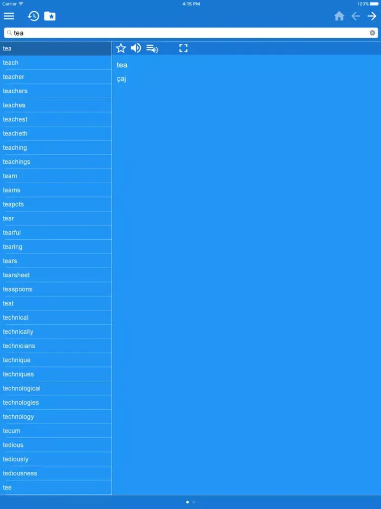 2. Favorites – you are able to add words to favorites list by clicking the “star” icon.