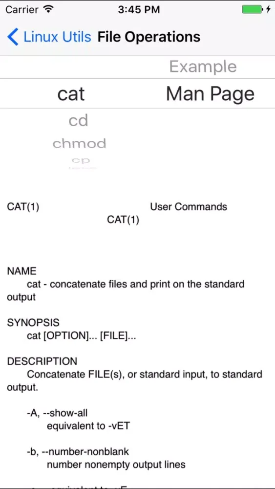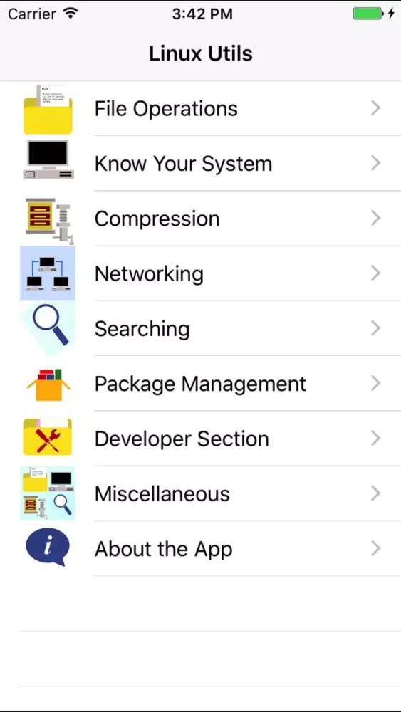 "Linux Utils" lists most frequently used commands in linux.Each category includes command name and brief summary of the command.Scroll on the command name to see the usage of the command.