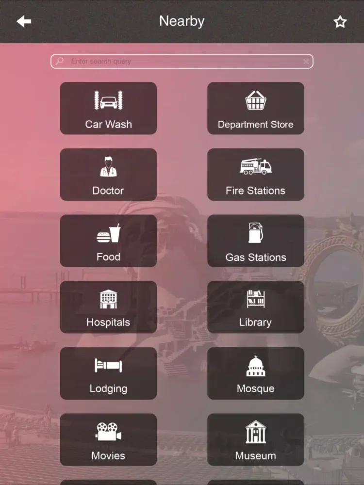 Near By - You can search for areas of interest, local events, trendy restaurants, things to do. Find places like nearby museums, new restaurants, and popular bars and clubs.