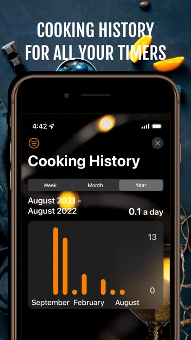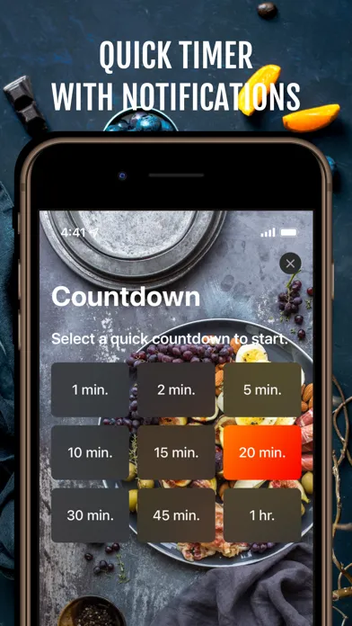 • Browse through timers for different meals from eggs, pasta, vegetables to fish, steaks, pizza and dessert.