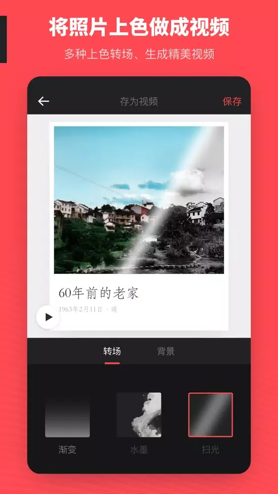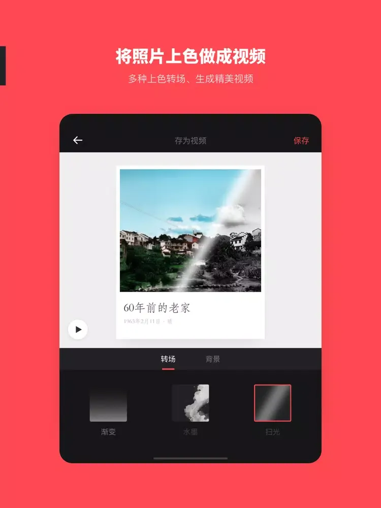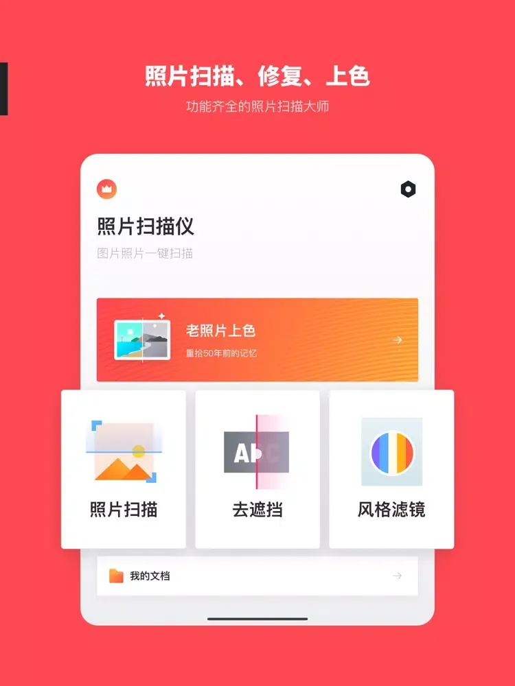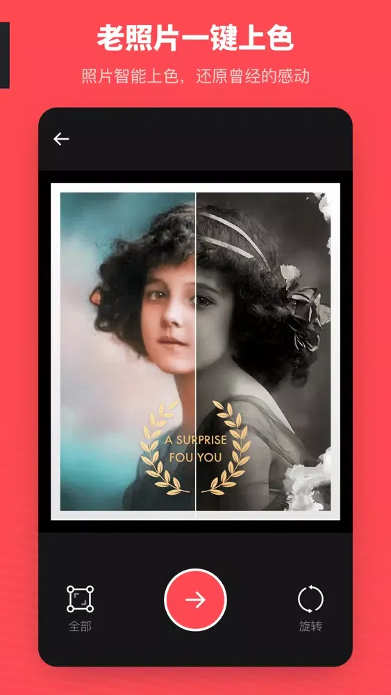 将您的老照片智能上色,复原昔日的光彩;更有丰富的去遮挡物功能、几十种风格滤镜供您使用;