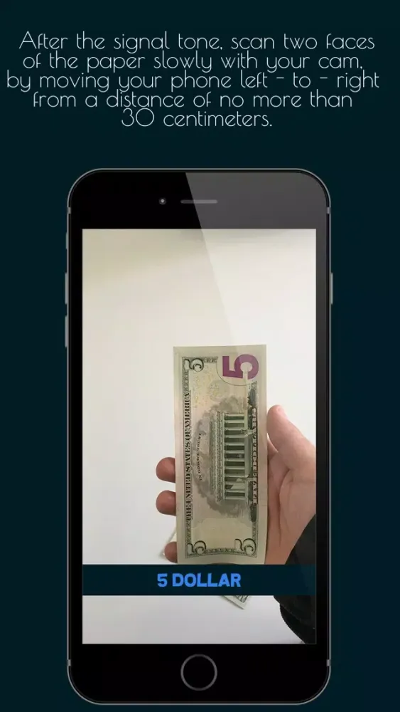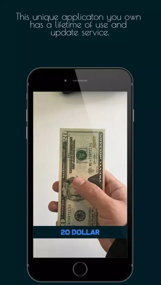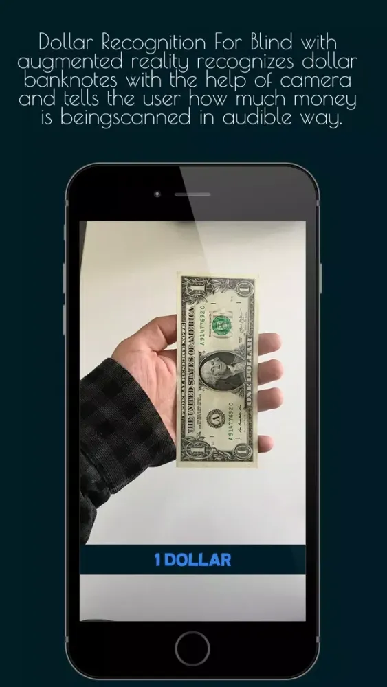 'Dollar Recognition For Blind' application with augmented reality recognize dollar banknotes with the help of camera and it tells the user how much money is being scanned in audible way.