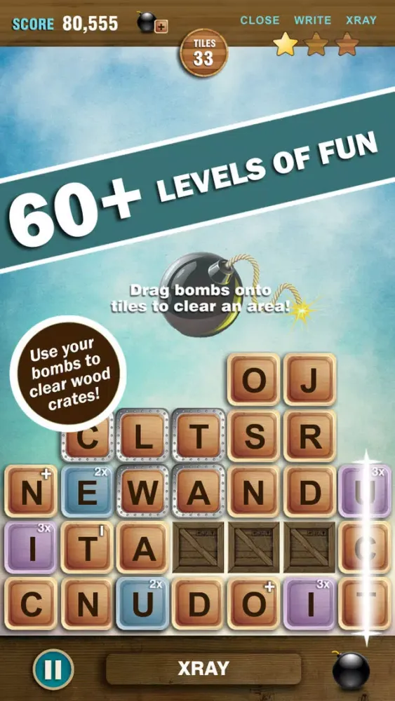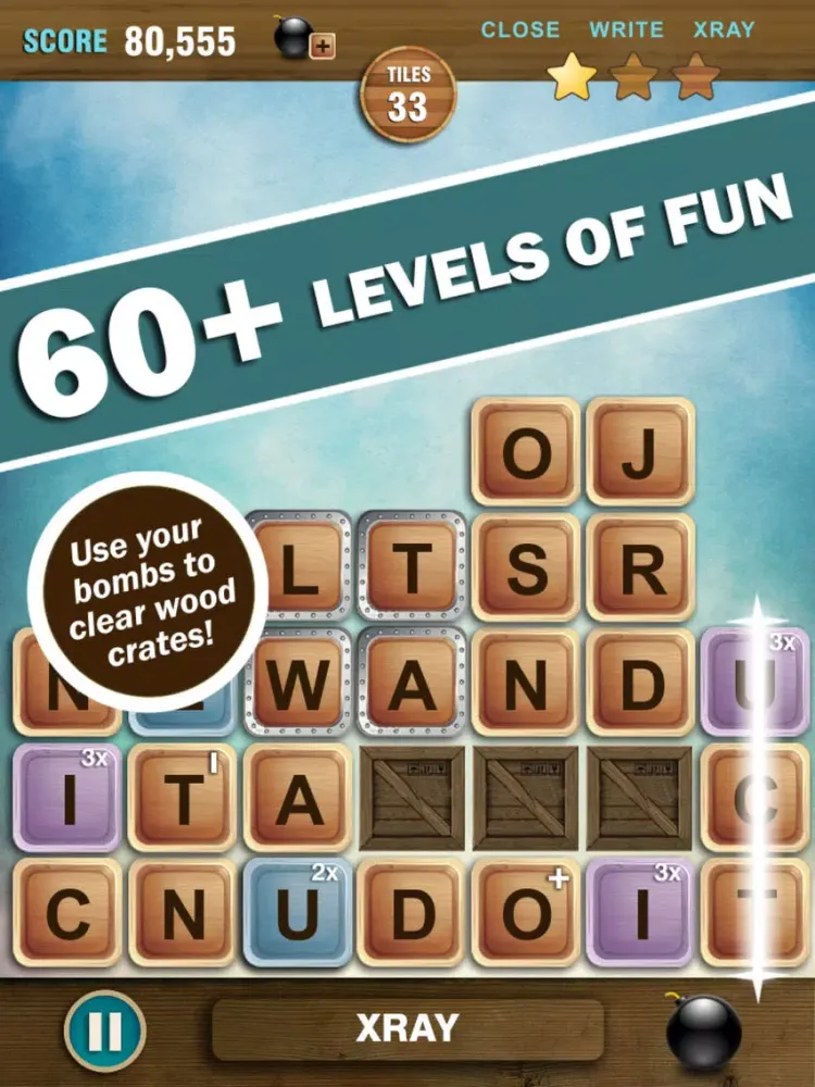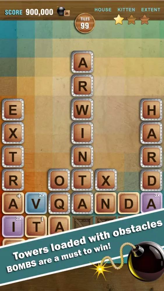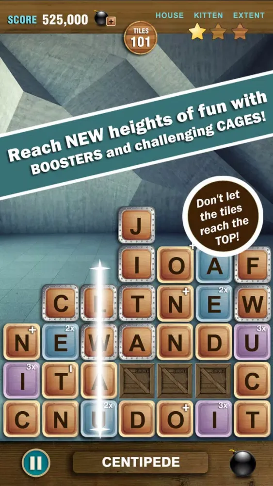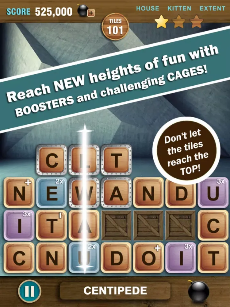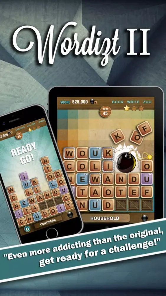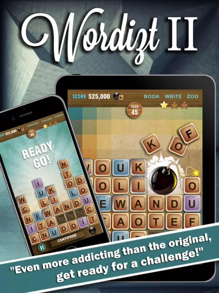 You're in for an adrenaline rush of word making fun with Wordizt II! Fast moving tiles fall from the top and your challenge is to make words before they pile up. Earn bonuses and power ups that help clear tiles faster.