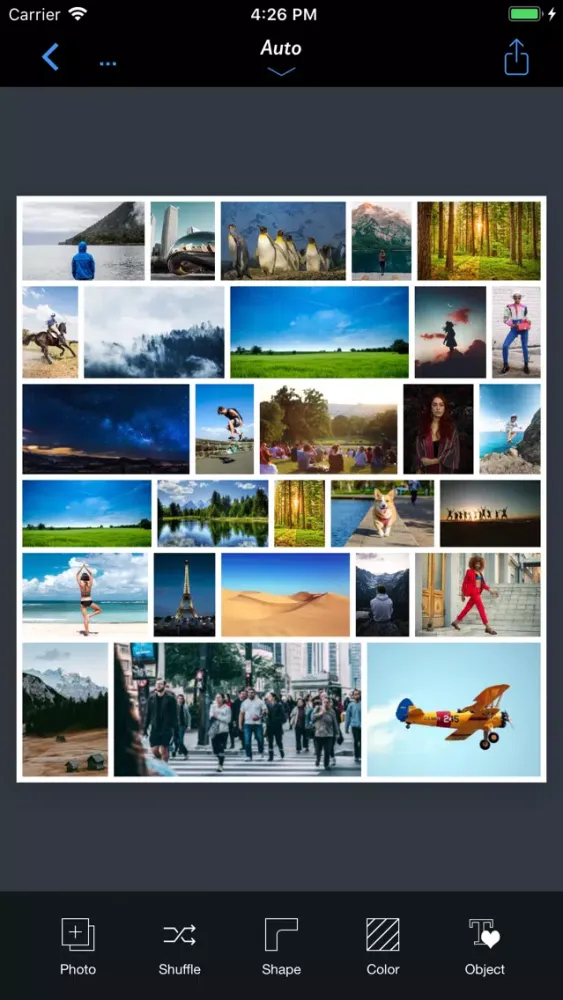 - Auto : Create fully automatic collage with a single tap.