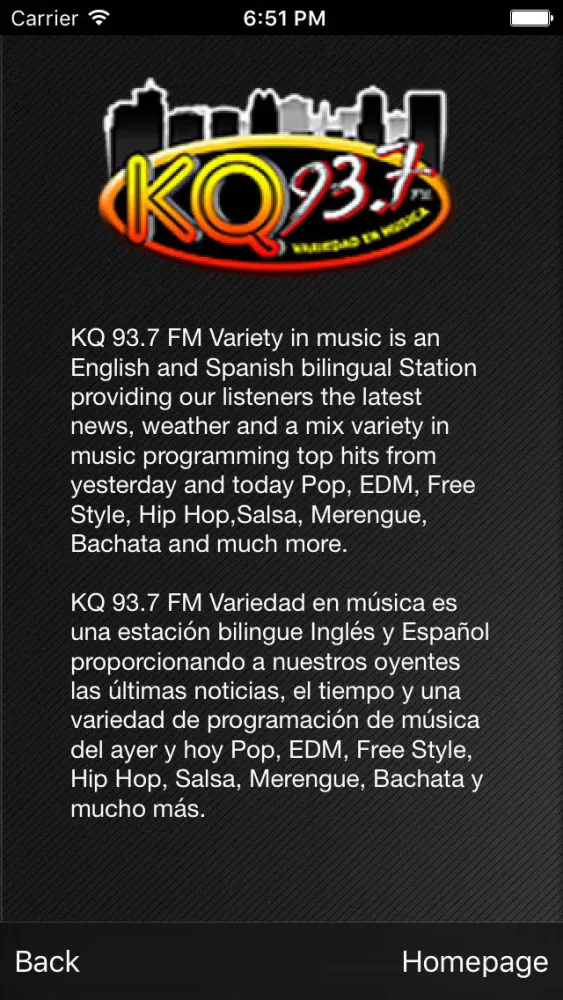 KQ 93.7 FM Variety in music is an English and Spanish bilingual Station