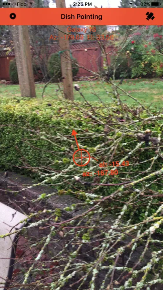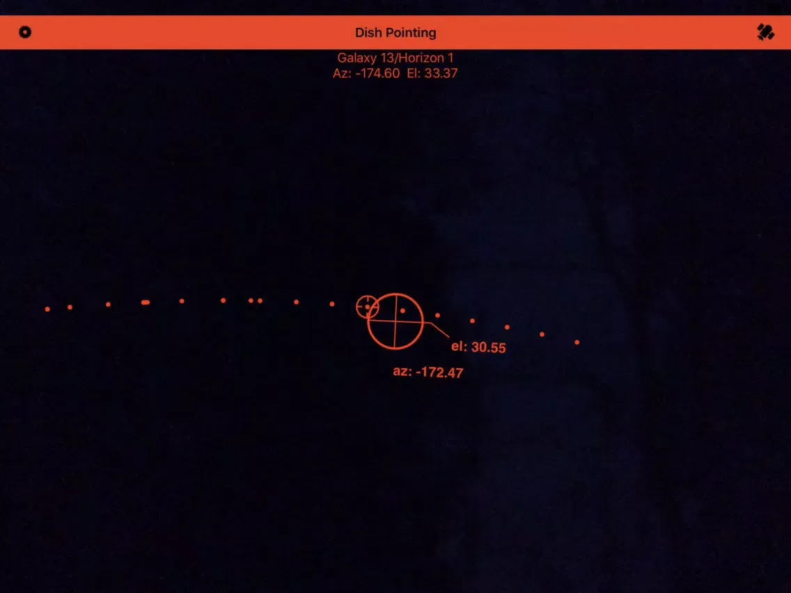 Activate your phone’s location capabilities (or enter your location in the settings menu), then select a satellite from our extensive list. The solution for the satellite will be displayed and an arrow will point to the location if it is off screen. The satellite is aligned when the satellite icon is centered in the reticle.