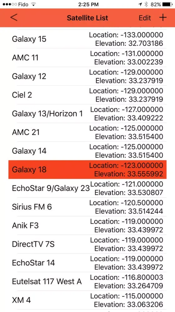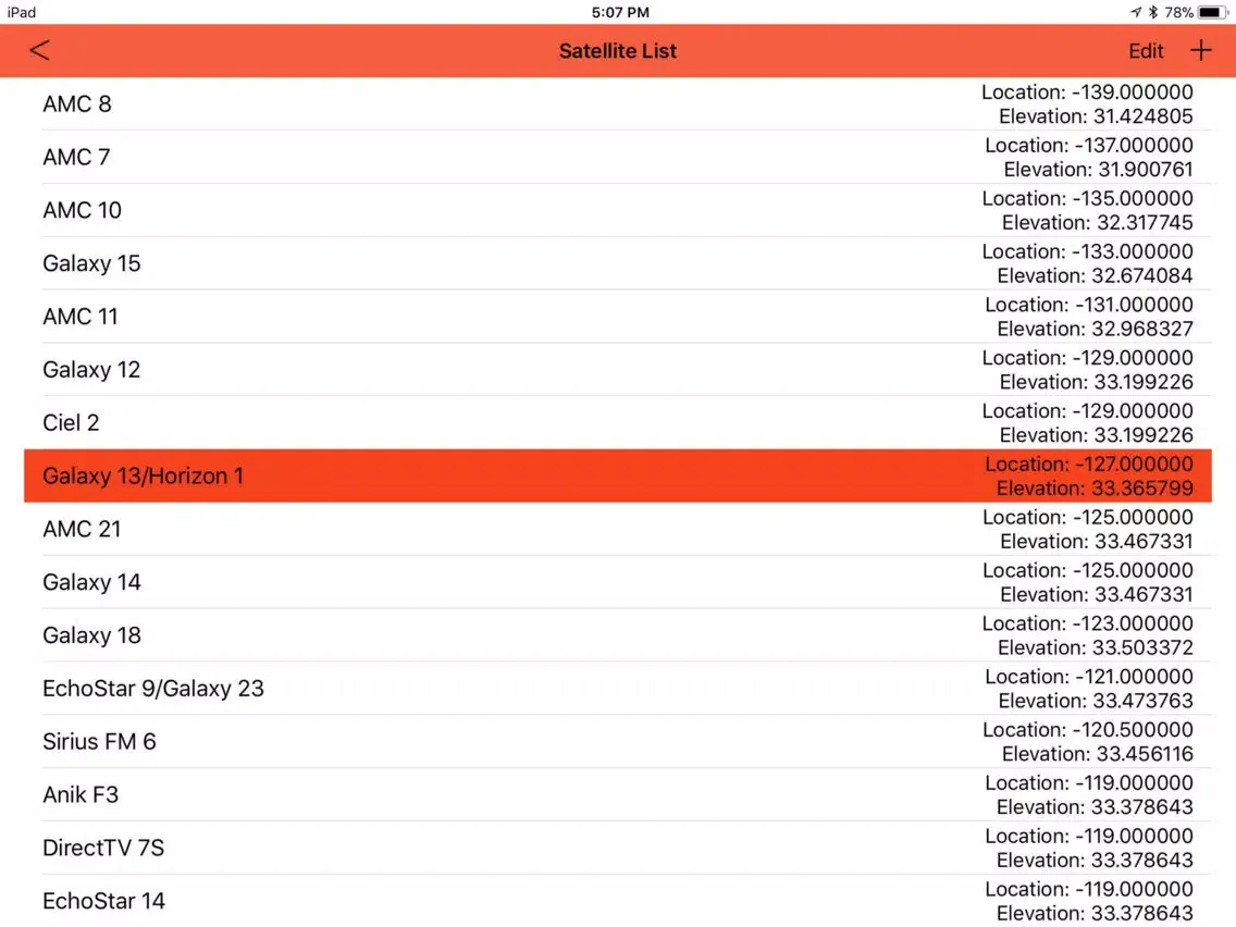 Satellite Dish Pointer comes with a user customizable list of over 230 geosynchronous satellites and has a very simple and intuitive display to guide you to where the satellite is in the sky.