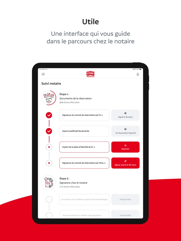 Vous pouvez retrouver sur cet espace client une multitude d’informations, vous pourrez fournir des documents (ex : offre de prêt), signer électroniquement des contrats, récupérer des documents (attestation de vente), et plein d’autres choses !