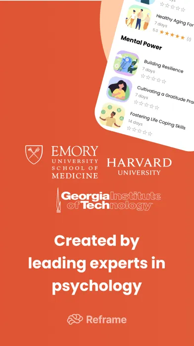 With a core, evidence-based education program, Reframe Mind teaches you how to identify, control, and regulate your emotions using the power of behavioral psychology and neuroscience. You will learn new tools and techniques to harness your internal locus of control by completing daily tasks, teachings, and more!