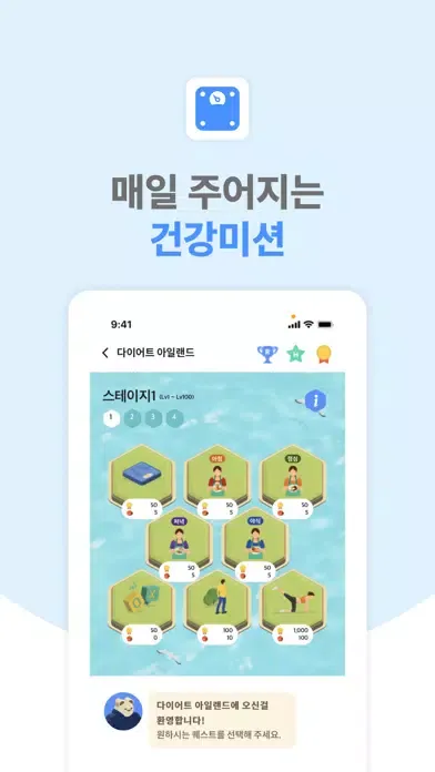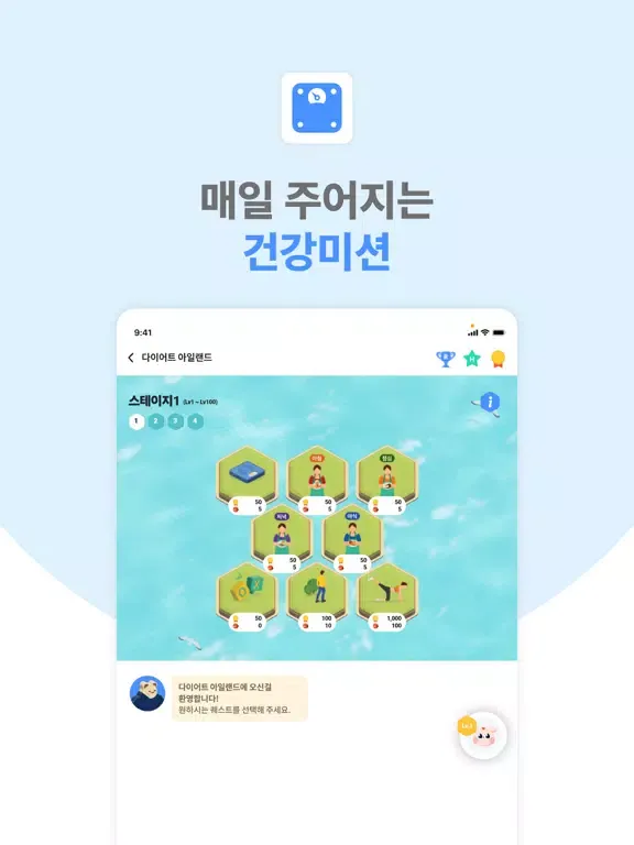# 경험치를 쌓아 레벨이 높아질수록 도전할 수 있는 건강미션이 많아져요!