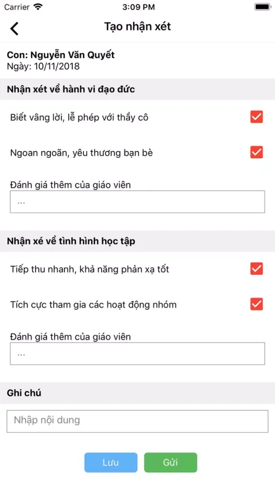 - Ứng dụng hỗ trợ gửi nhận xét của các cô về con hàng ngày tại trường, và cuối mỗi tháng thay cho cuốn sổ cứng hiện tại mà nhà trường sử dụng. Thay vì hàng tuần phụ huynh nhận được nhận xét về con thì hàng ngày phụ huynh sẽ được đọc nhận xét về con.