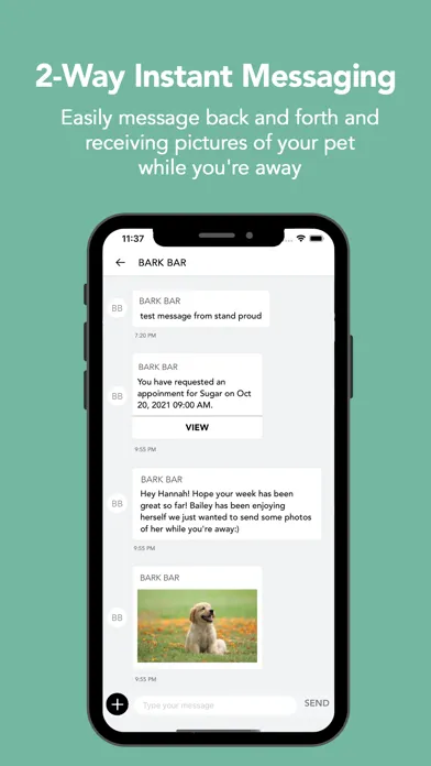 Bark Bar offers the very best in pet care! Use our app to schedule appointments, receive status updates & pet pictures, chat with us, make contactless payments, and much more! Come see us at Bark Bar where we delight you and your pets!