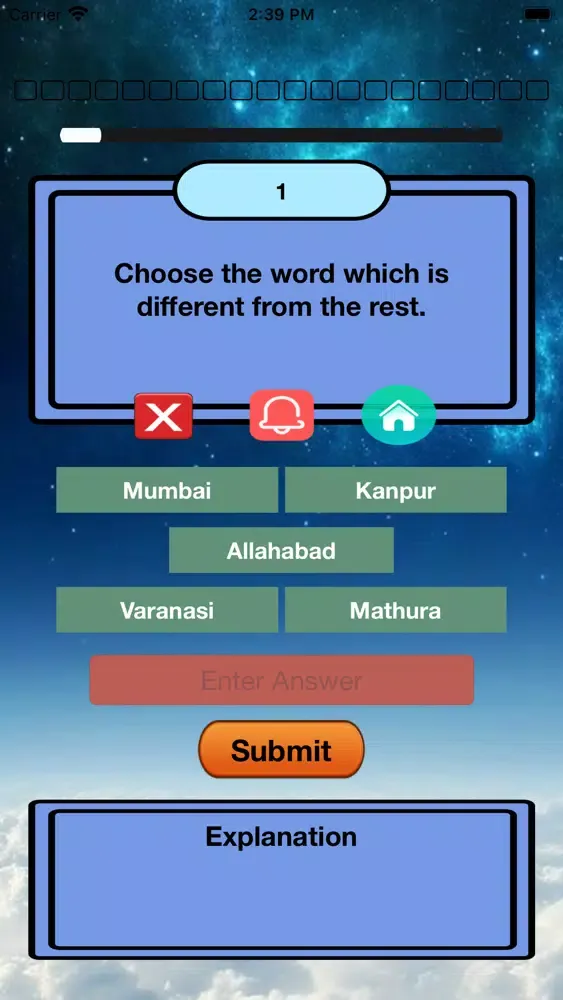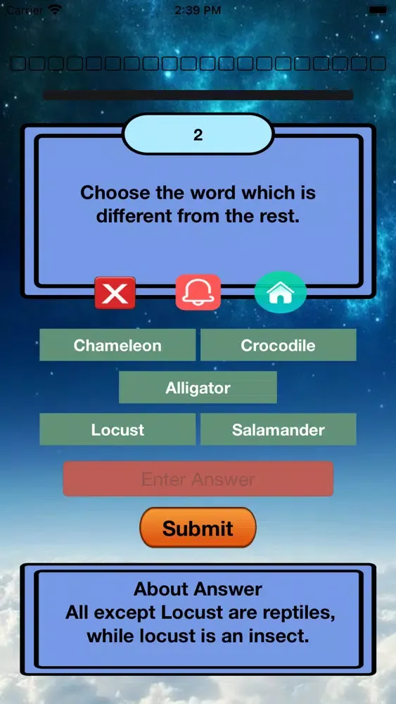 Here are five options for you. You need to find the only different option. Or color or shape, etc. Come and explore the beauty under the stars!