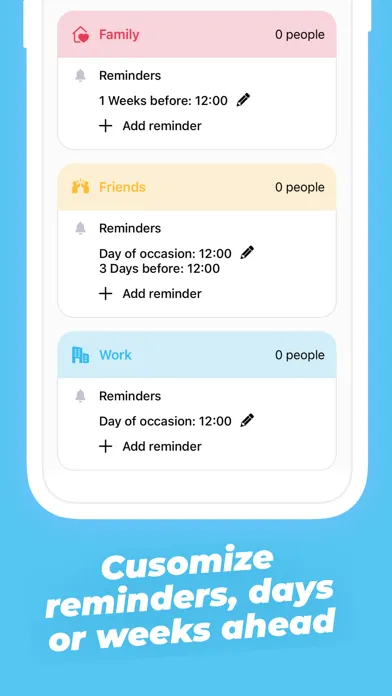 • Arrange your contacts into groups and customize their appearance and reminders!