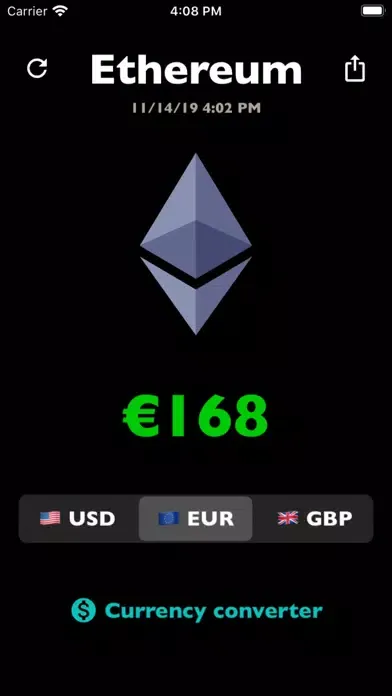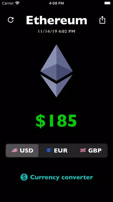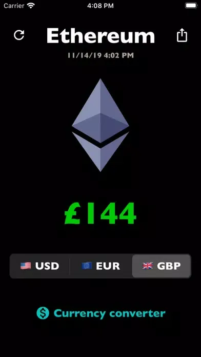 Ethereum Price - convenient and beautiful app that displays the current rate of Ethereum to three currencies.
