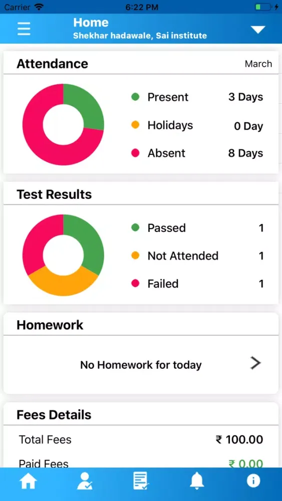 Drona cloud academy is a platform made for schools, colleges and private tuition classes to share information about the student's performance with students and with their parents. This is a single platform which gives information on attendances, tests, holidays and fees details of the students.