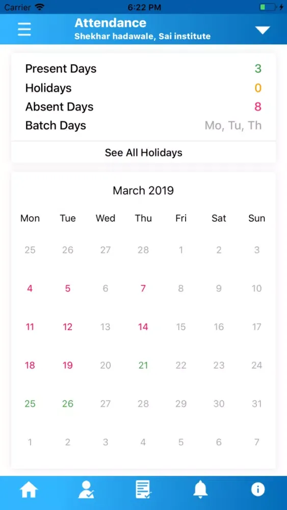 2. Monthly attendance details
