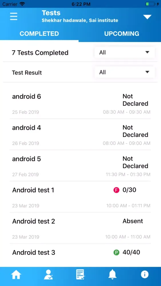 4. Upcoming test and completed test details