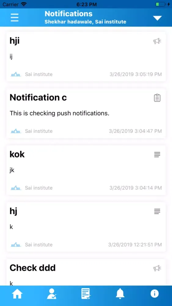 5. Notifications send by institutes and auto in-app notifications