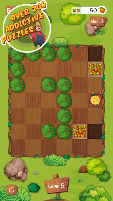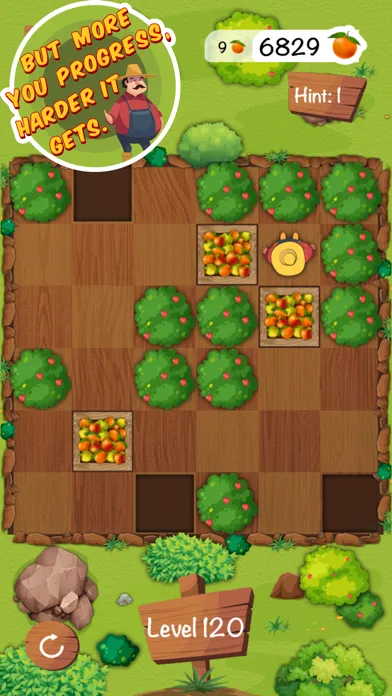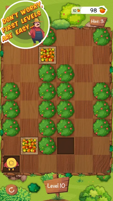 * The farmer cannot walk through fruit boxes or tree walls, so you have to be careful not to push them into a corner where you can't get them out again.