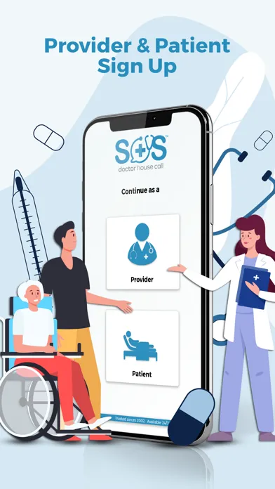 SOS Doctor House Call is an App that connects our Users/Patients with Providers to effortlessly facilitate on-demand, same day service, medical house calls at the touch of a button.
