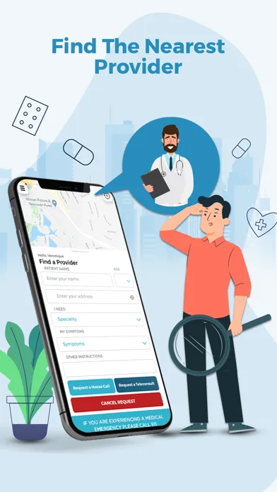 • Smart Matching Technology finds the best available Physician near your location.