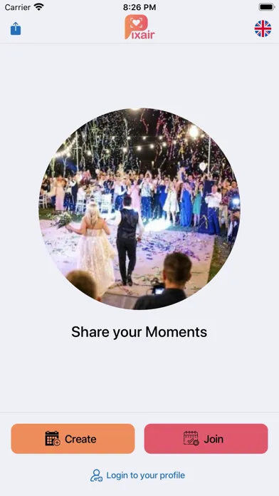 In Pixair you are able to create your own events and share photos with your participants. Share your event code and participants will be able to join your event.