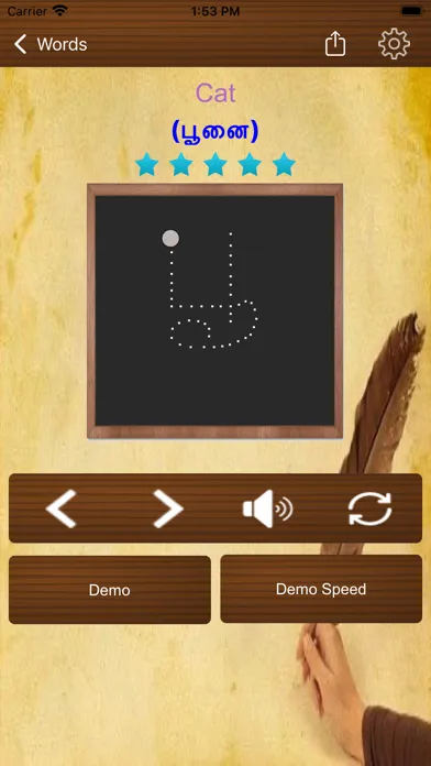 When you download this app, you will unlock the endless possibilities when you learn to write Tamil. This free app gives you a demonstration of how the letters are written and then the opportunity to repeat the procedure until you feel comfortable and able to move on