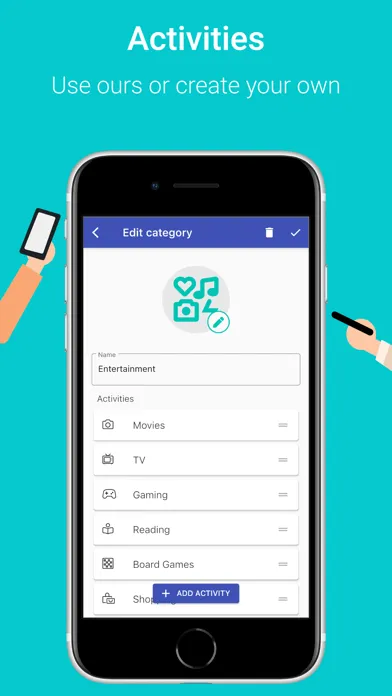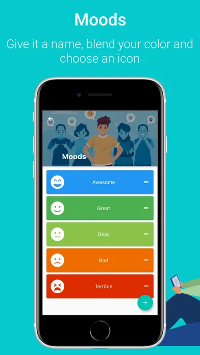 Everything in Moody Journal is customizable. You can change your moods, activities, colors, icons and so much more. Change it in one place and the mood-tracker will update it everywhere.