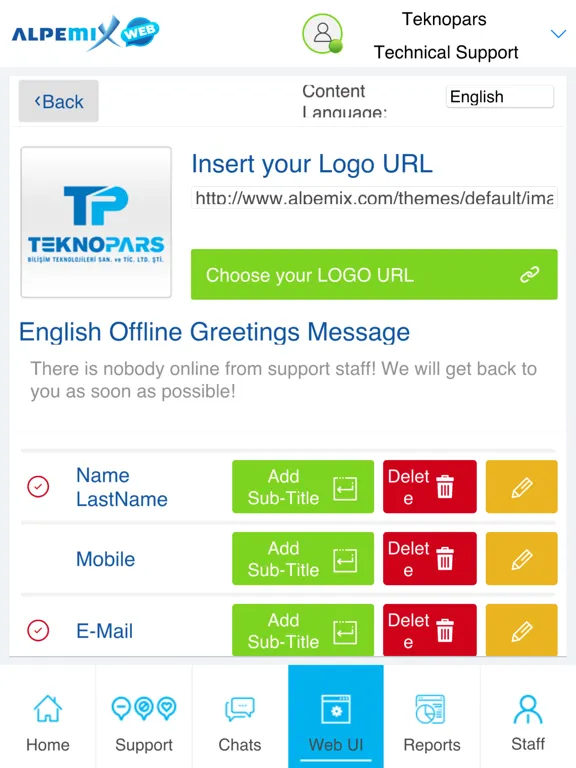 While the support staff is online, you can allow the user to fill in certain information before starting the correspondence.