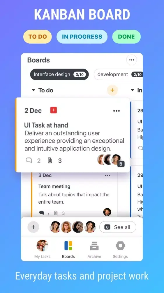 Everyday tasks or a huge project, make everything well organized. Visualize progress and track it with ease.