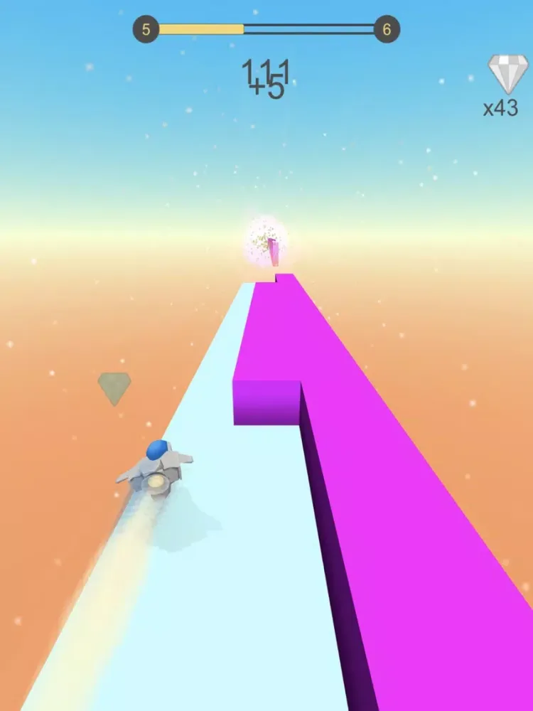 Colorful background with more than 6 themes plus exciting level platforms with high magnitude in elevation. Steer through this speedy track and dodge your way out of Experience lighting speed as you progress throughout the level.