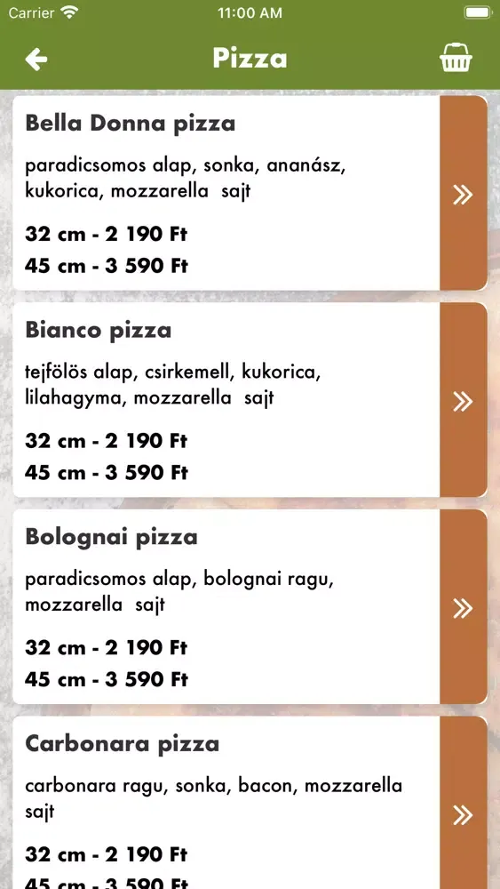 A Dönci Pizza Budapest XX. kerületéből szállítja ki finom pizzáit 32cm-es és 45cm-es méretekben. Kínálatunkban szerepelnek még tortillák, box, köretek, bőségtálak, öntetek, palacsinták, desszertek, üdítők és energiaital. Ha kedvet kaptál, rendelj rajtunk keresztül online és házhoz szállítjuk neked!