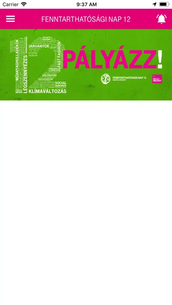 Az FN12 – 12. Fenntarthatósági Nap alkalmazásban minden fontos információt egy helyen megtalálsz, emellett szavazhatsz kedvenc pályaműveidre és kiállítóidra is. Érdekel, mikor kezdődik a következő beszélgetés? Megismernéd az előadókat? Ránéznél a térképre, hogy kedvenc kiállítód sátrát megtaláld? Új applikációnkkal idén már a szavazást is digitális felületre tereljük, matricázás helyett egy-egy kattintással jelezheted, szerinted ki érdemes a közönségdíjra, illetve kik a legjobb kiállítók az idei kiállítói térben.