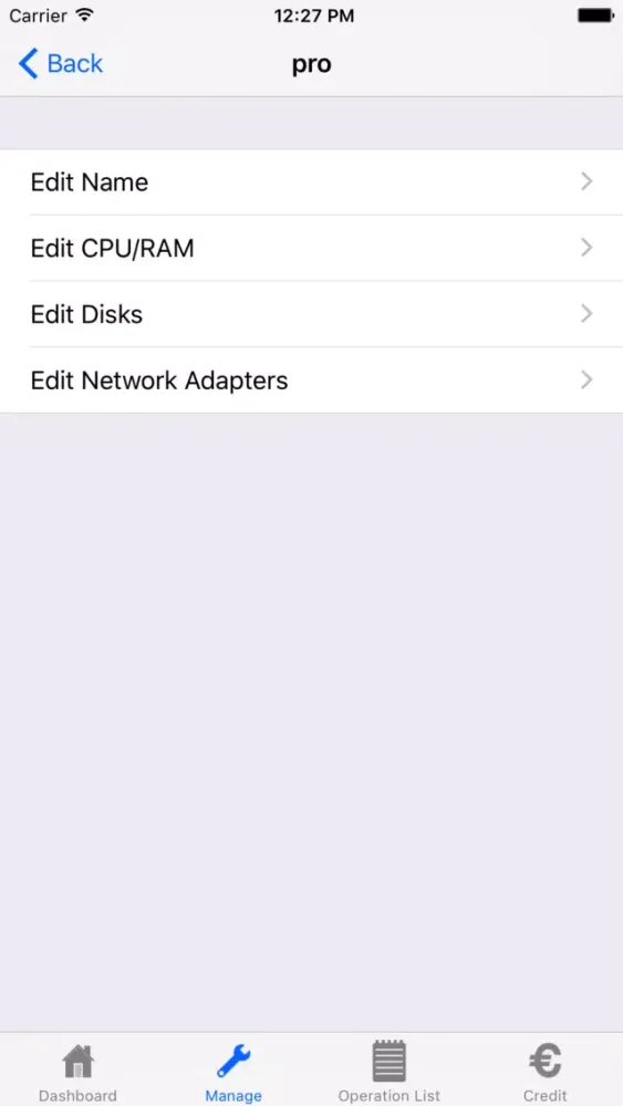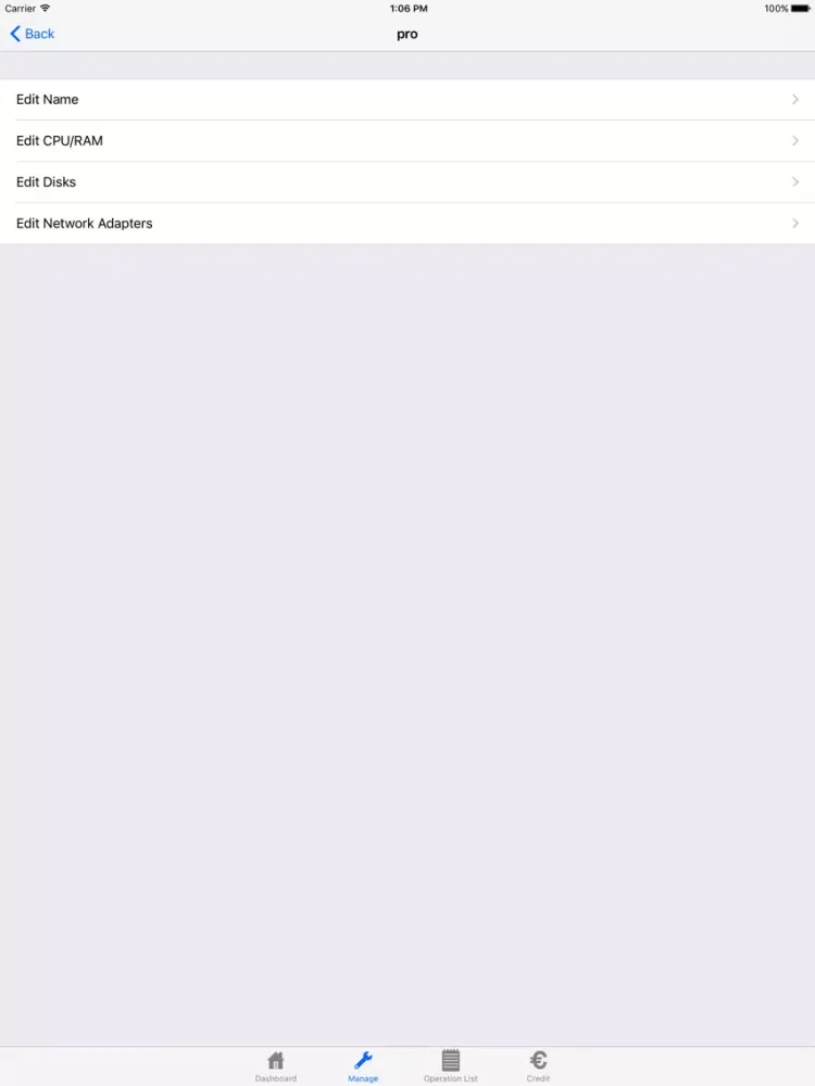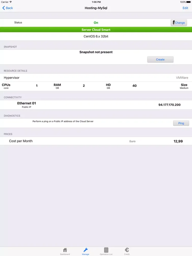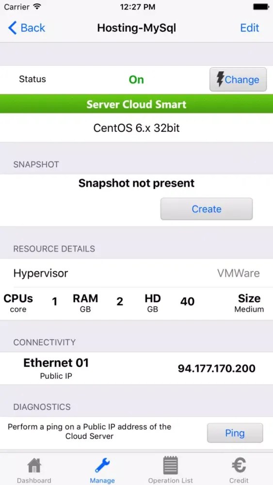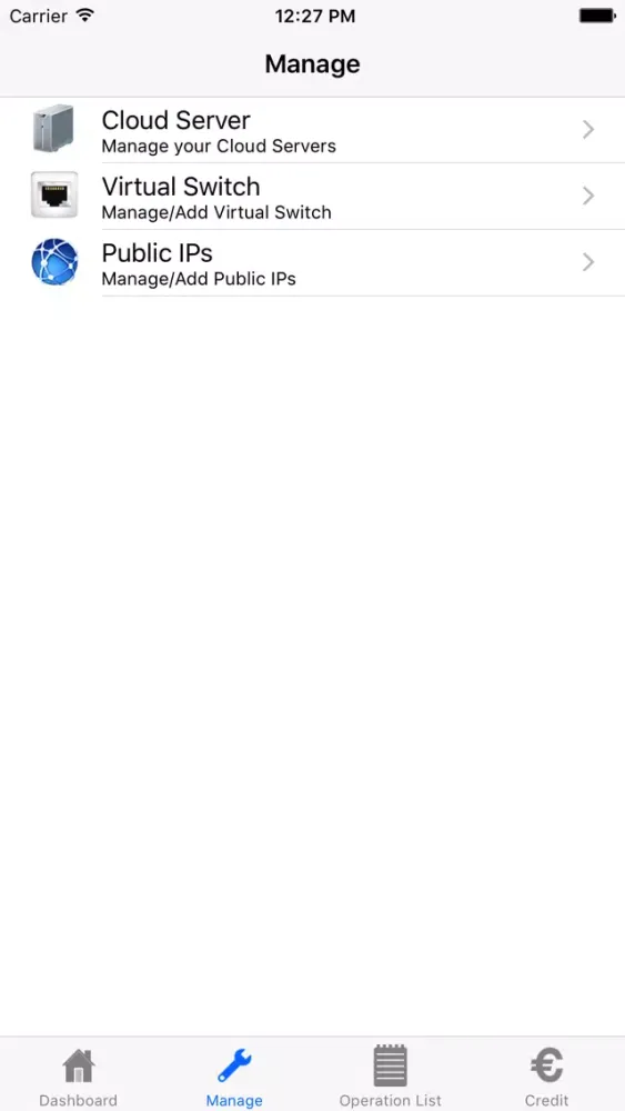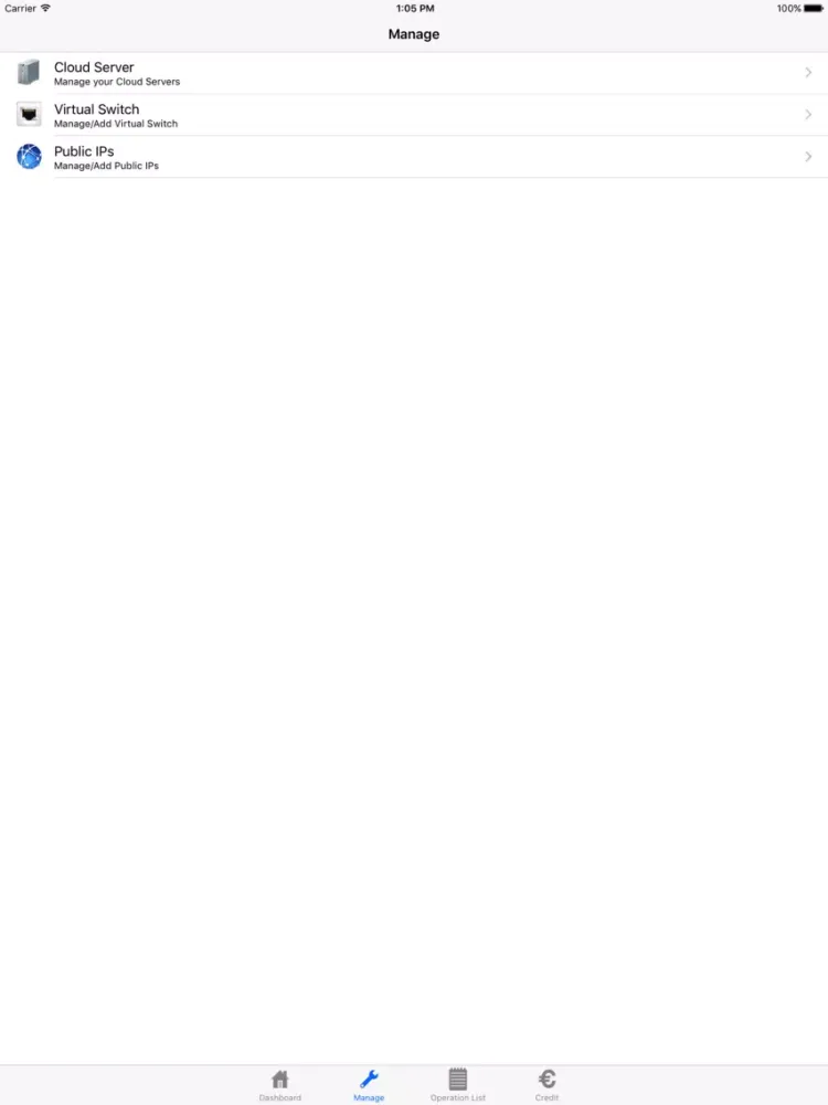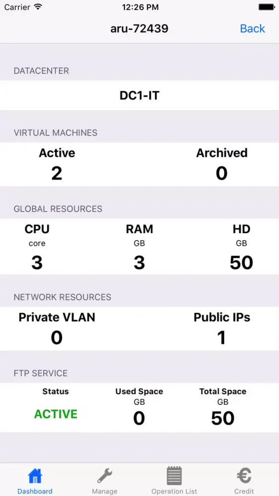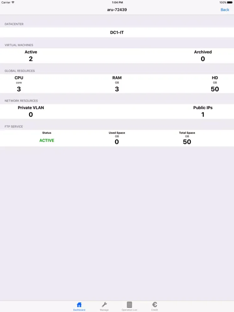 The application allows you to view the features of the virtual Data Centers and perform operations on the Cloud Servers.