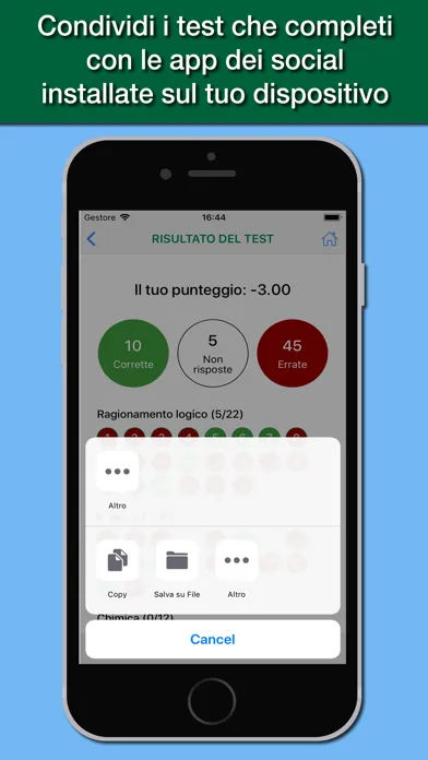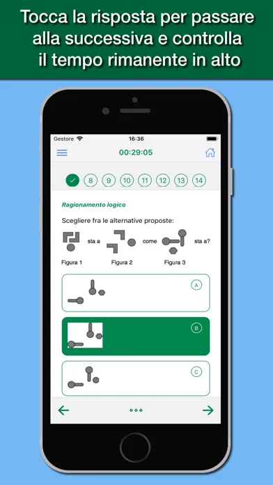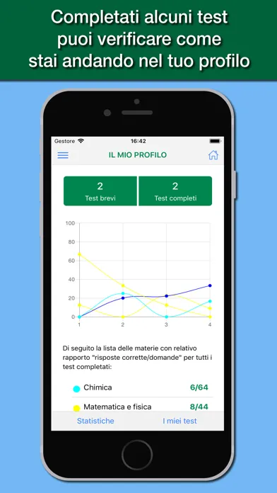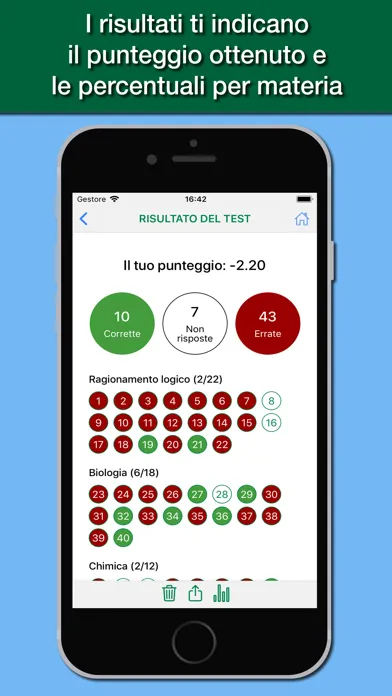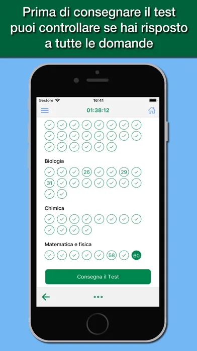 The app is designed to simulate as close as possible the test you actually have to deal with, with all the topics of the test: logical skills and general knowledge, biology, chemistry, physics and mathematics.