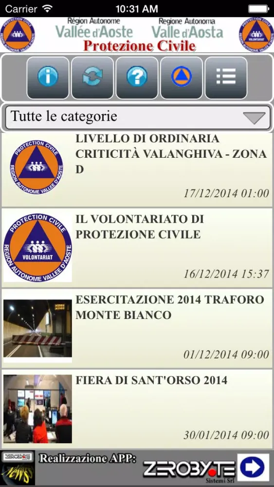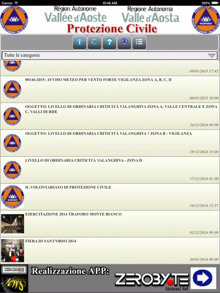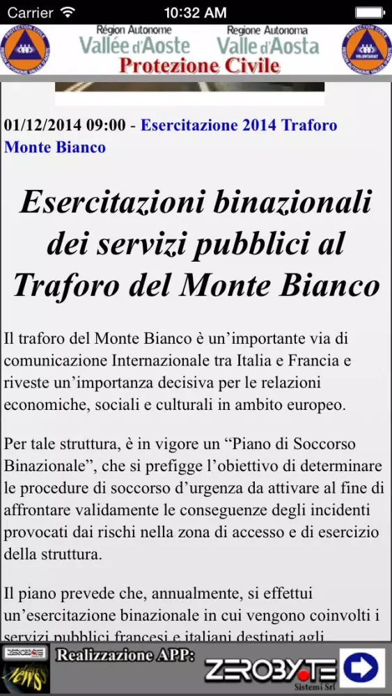 App per la visualizzazione delle notizie della Protezione Civile della Regione Autonoma Valle d'Aosta (Région Autonome Vallée d'Aoste)
