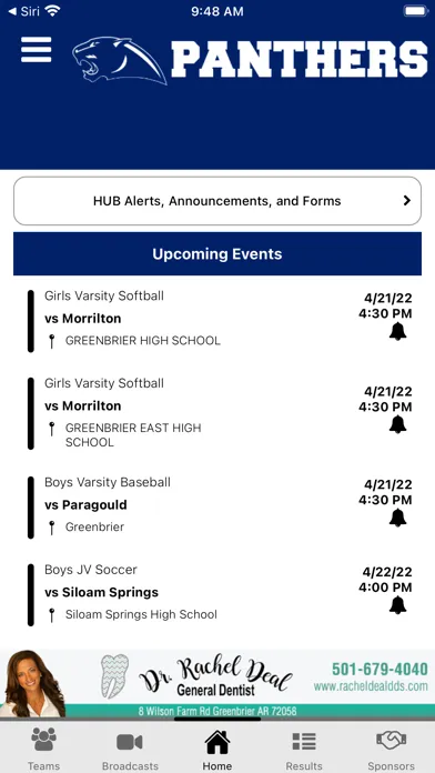 -Supporters: Special Thanks to local boosters and supporters of Greenbrier Panthers Athletics with a directory including website and in-app calling.
