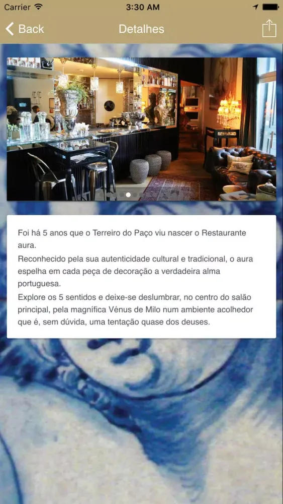 Venha explorar os 5 sentidos e deixe-se deslumbrar, no centro do salão principal, pela magnífica Vénus de Milo num ambiente acolhedor que é, sem dúvida, uma tentação quase dos deuses.