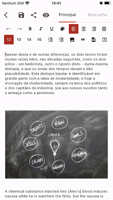 O aplicativo possui funcionalidades simples para formatar seu texto, como: tamanho da fonte, cor, alinhamento, texto em negrito, itálico, sublinhado, citação direta longa, notas de rodapé, quebra de página e inserir imagem.