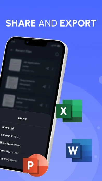 Essential for remote workers, students, educators, and professionals like accountants, realtors, managers, and lawyers. Digitize contracts, tax forms, receipts, handwritten notes, assignments, and export them as PDF, JPG, DOС, XLS, PPT, or TXT files!