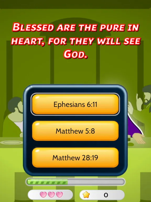Learn all about the Bible in this fun quick-fire quiz game! Answer correctly before time runs out, or it's game over! Gradually improve your knowledge of the world's most read book, and prove to your friends that you're the ultimate biblical expert!