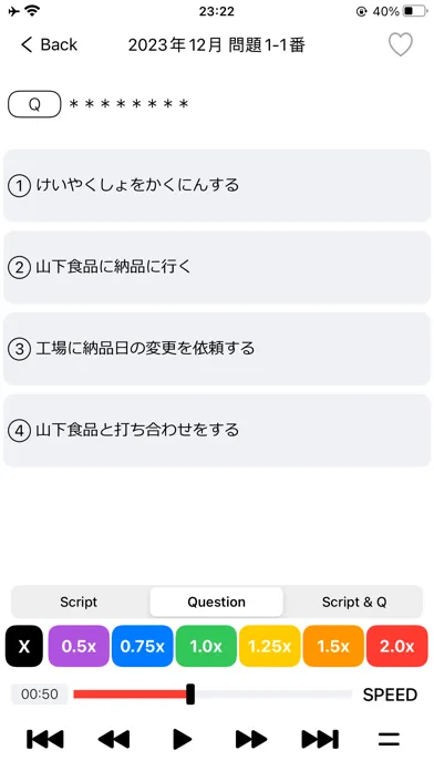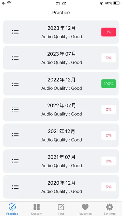 This is a Japanese listening practice app for the Japanese Language Proficiency Test N1.