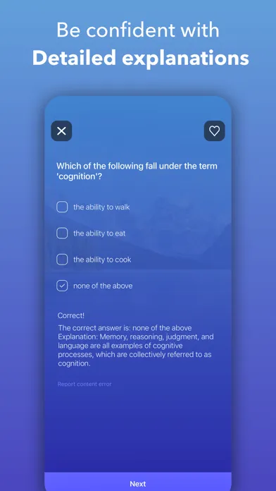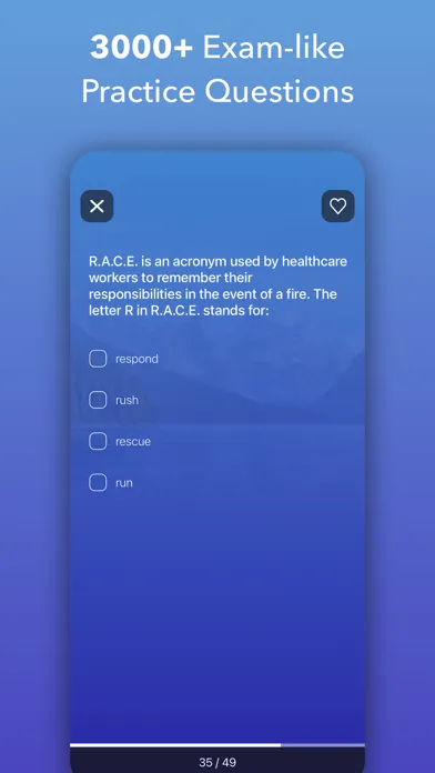 Swipe the cards to quickly review CNA concepts without the need to go through the whole test, complete the right amount of questions for you, and get some quick studying in.
