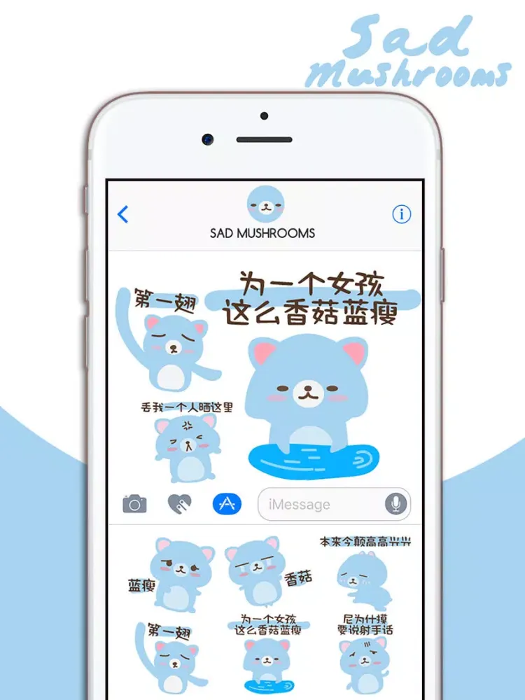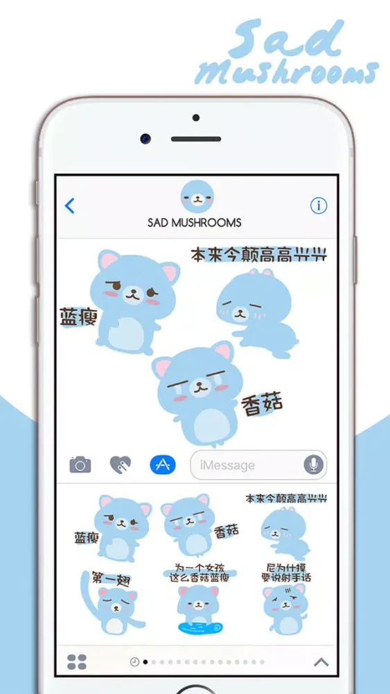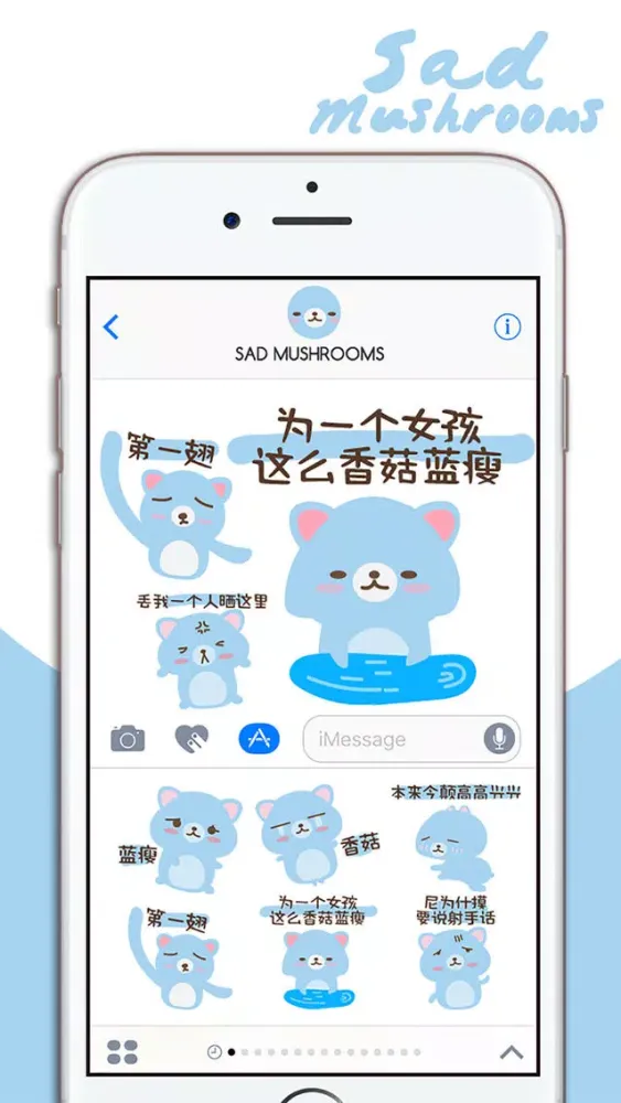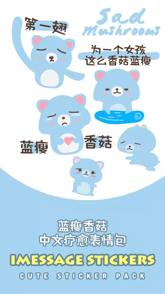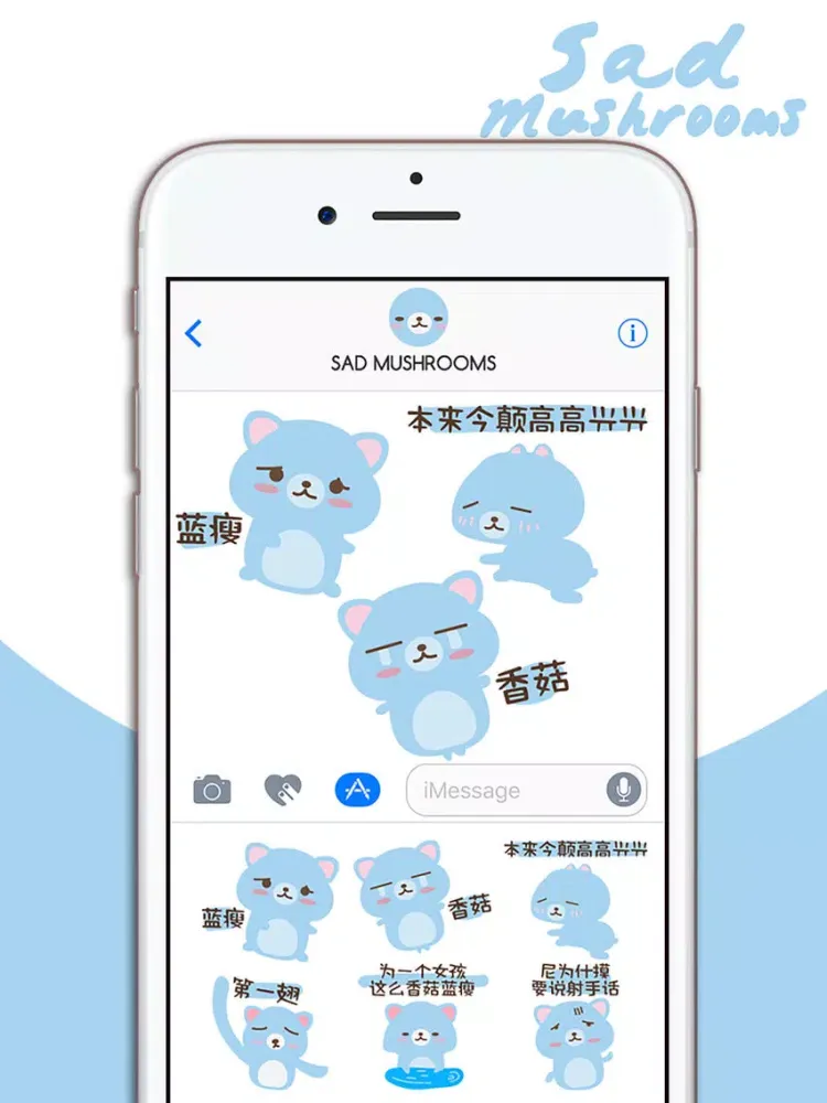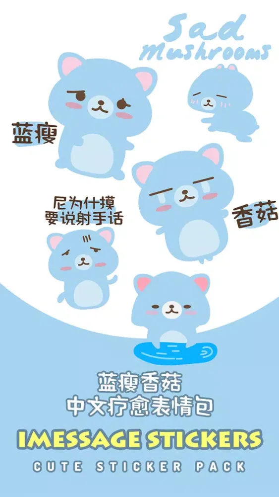 蓝瘦香菇 - 我懂你的心情(中文疗愈表情包)iMessage版本,陪你度过每一个忧伤的片段,支持iPhone 7、iPhone 7 Plus与所有iOS10装置使用,现在就下载吧!