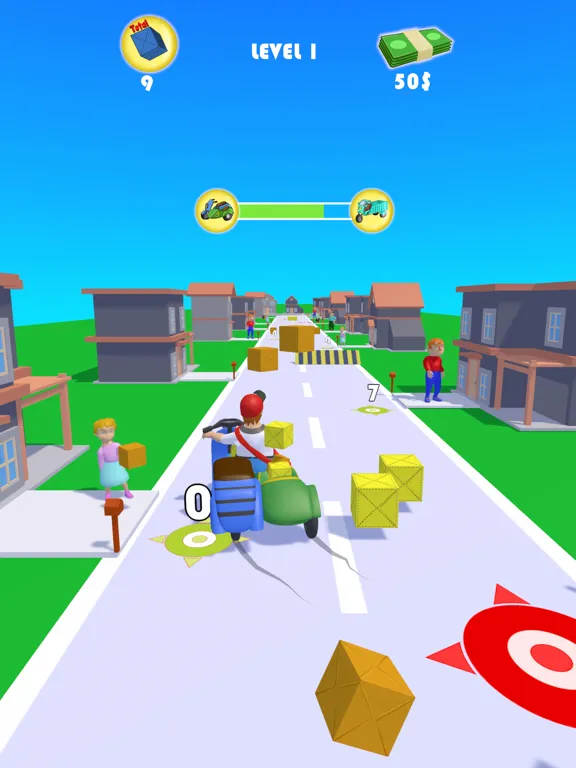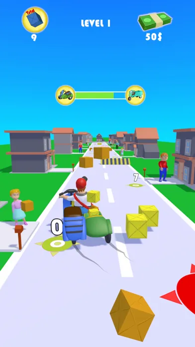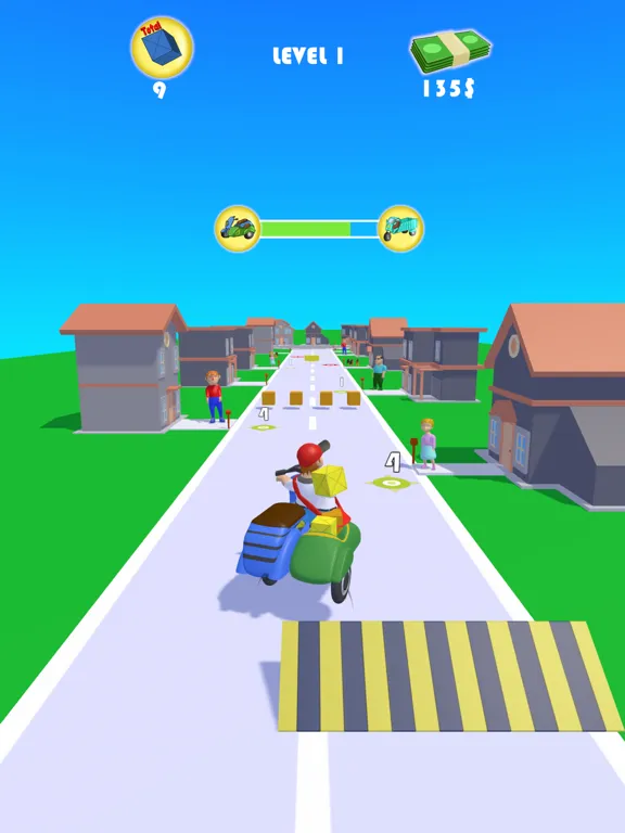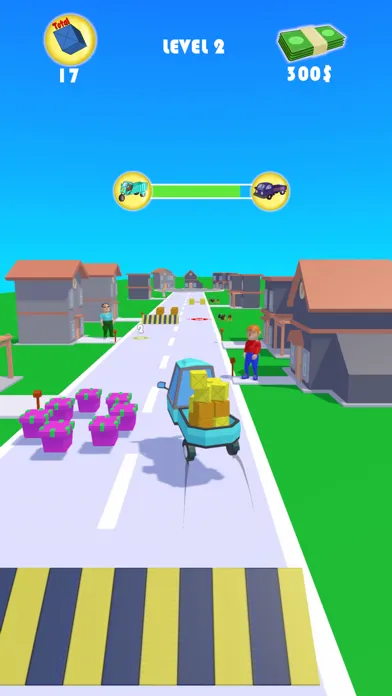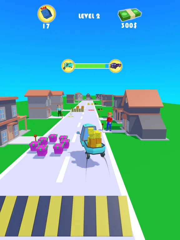 Simply swipe left and right to control your character and vehicle. Reach the final by collect packages and delivered them.